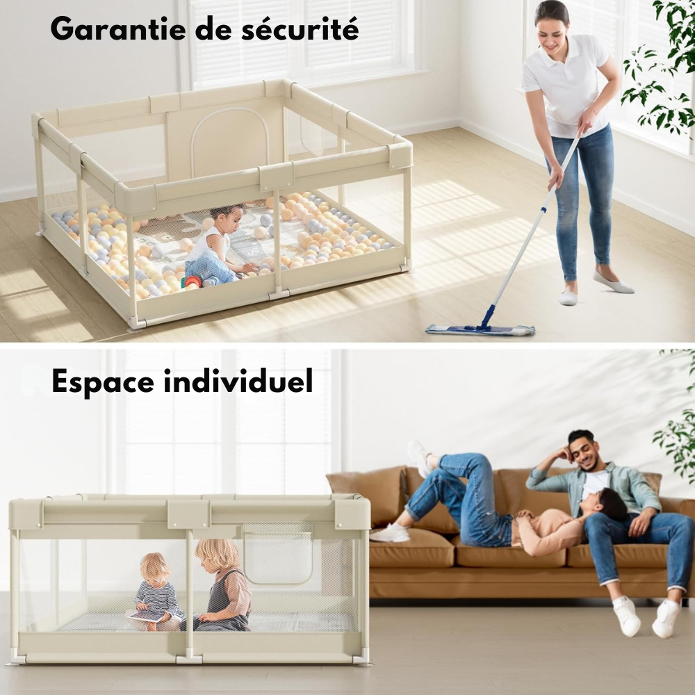 Ce parc bébé allie sécurité, praticité et compacité, ce qui en fait un choix parfait pour les parents qui souhaitent offrir un espace de jeu dédié à leur enfant sans encombrer leur intérieur. Son design neutre et sa facilité de rangement vous permettront de l'intégrer harmonieusement à votre domicile, tout en garantissant la sécurité de votre tout-petit.