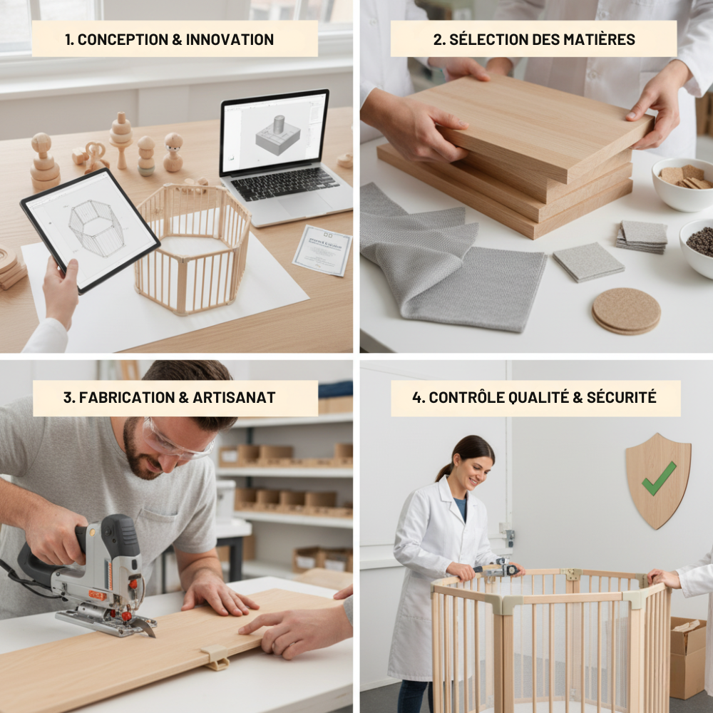 Chez Parc Bébé®, chaque création est le fruit d'une démarche réfléchie et passionnée. Nous croyons en une fabrication qui allie innovation, durabilité et sécurité absolue.