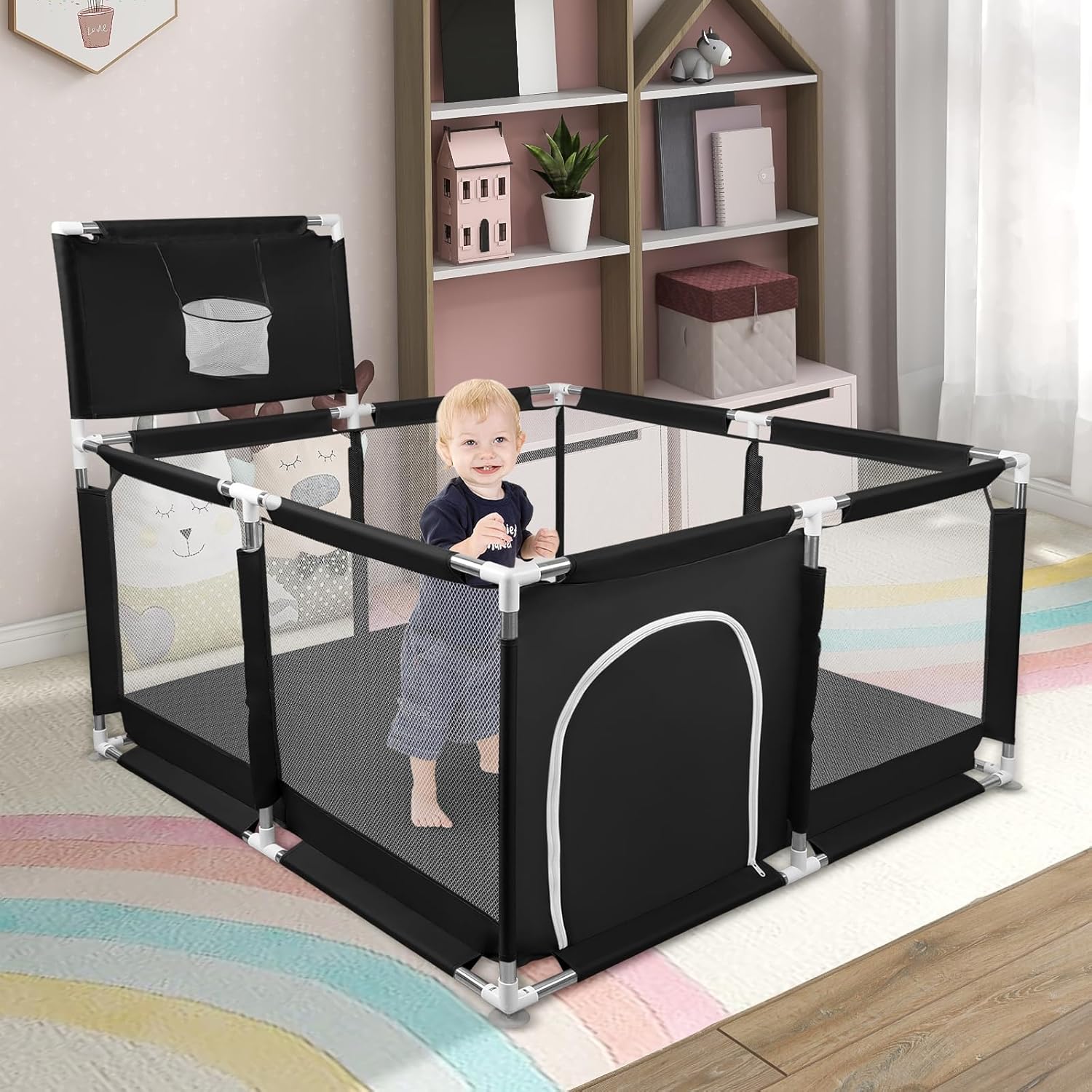 Ce Parc bébé noir est l'endroit parfait pour que votre enfant développe sa motricité et son imagination en toute sécurité. Grâce à ses fonctionnalités bien pensées, il devient un espace essentiel du quotidien, apaisant à la fois bébé et parents.