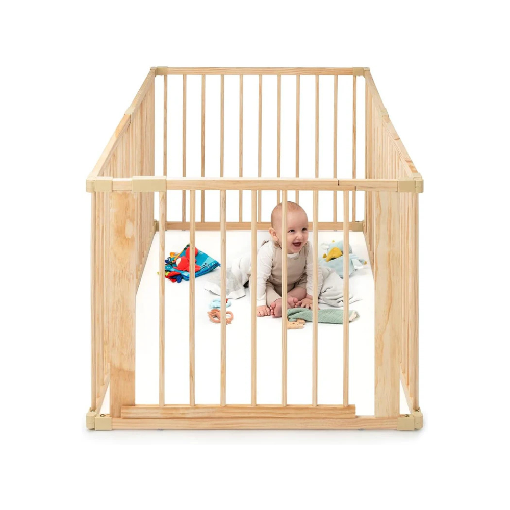 Chaque détail compte pour la sécurité de votre enfant. La porte de notre parc bébé est équipée d'un loquet de sécurité robuste et facile à utiliser pour les adultes, mais impossible à ouvrir par les petites mains curieuses. Vous pouvez vaquer à vos occupations en toute sérénité, sachant que votre enfant est en sécurité à l'intérieur de son espace de jeu.